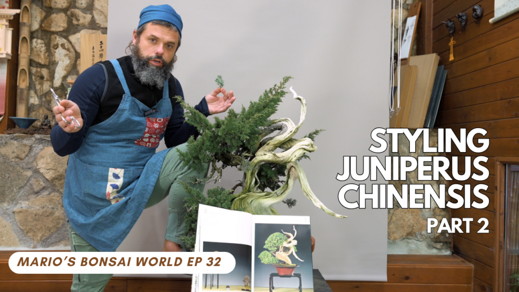 Mario continues working on the juniper tree and tells how to properly clean and wire it.