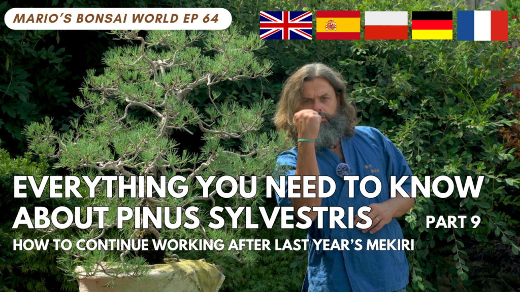 Following your questions from Sunday’s Q&A, we’re presenting this topic earlier than we had planned. First, you’ll see the work on a pine where mekiri was done last year, resulting in an impressive number of buds. Then, as a small bonus, Mario will show how to prepare branches for autumn wiring. The full episode with this year’s results is still ahead of us.